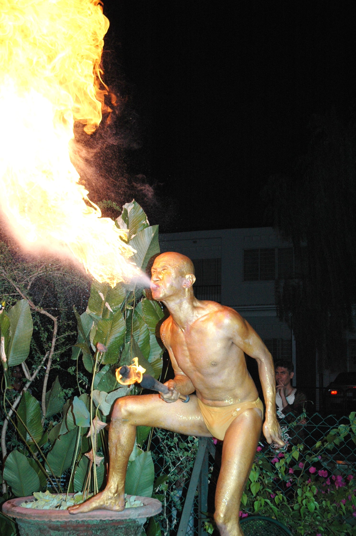 SINGAPORE Home/Studio/GalleryA photo from the official opening of our Home Gallery. 200 guests turned up, and we had flamenco, fire eating, juggling, drinks and food. Artist Roy Parimal almost burnt the house down!