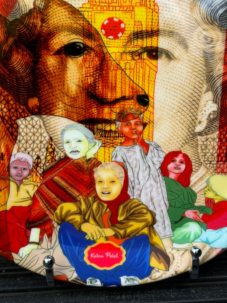 Made from solid and sturdy Bone china, this luscious dinner plate features original artwork by Ketna Patel. It has a shallow depression, is dishwasher safe and comes in 4 different sizes.