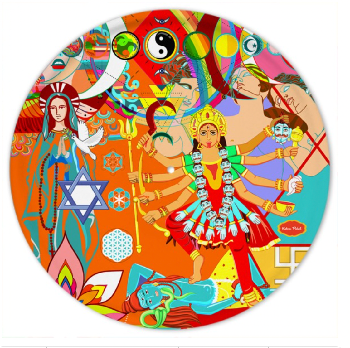 This powerful artwork transcends religious confines, inviting viewers into a realm where the essence of the divine feminine manifests as a unified, radiant force—a celebration of resilience, compassion, strength, and nurturing energy that permeates the cosmos. Patel's creation is a visual testament to the eternal and universal power of the feminine principle, a cosmic dance of divinity that transcends time and space, inspiring reverence and awe in all who behold it.