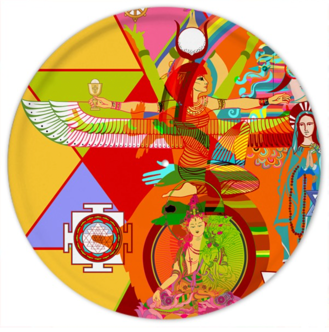 'Sisterhood' stands as a breathtaking homage to the universal feminine essence, an artwork that transcends boundaries and embraces the myriad forms of divinity across cultures and epochs. Within the captivating confines of a circular canvas, Patel weaves a mesmerizing tapestry that unites diverse goddesses from various religions and mythologies, symbolizing the cosmic convergence of feminine divine energy.