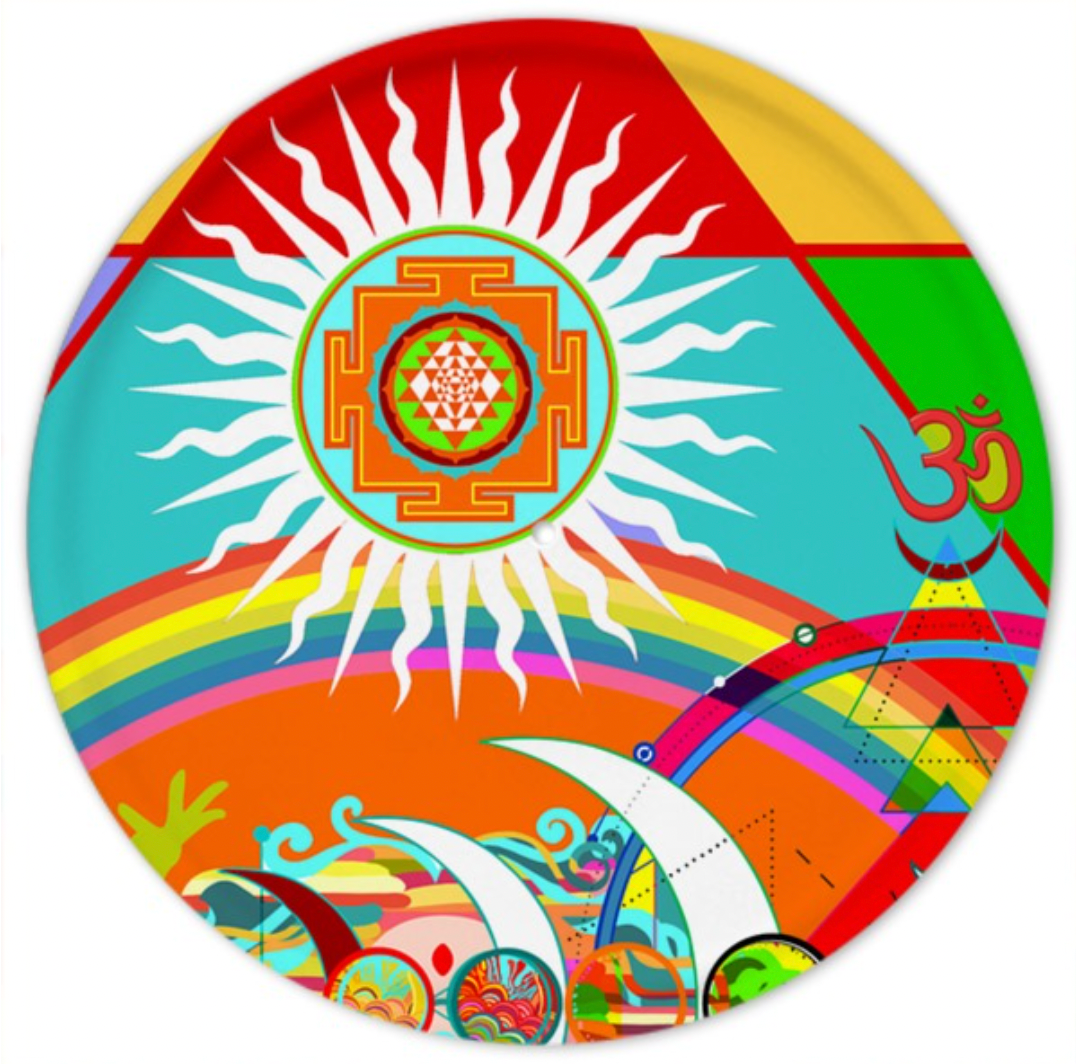 Patel's brush strokes intricately weave together elements of sacred symbolism, vibrant colors, and fluid lines, creating a visual symphony that speaks to the soul. The circular composition acts as a potent symbol, signifying continuity, unity, and the cyclical nature of creation—wherein the feminine principle is both the source and culmination of cosmic divine energy.