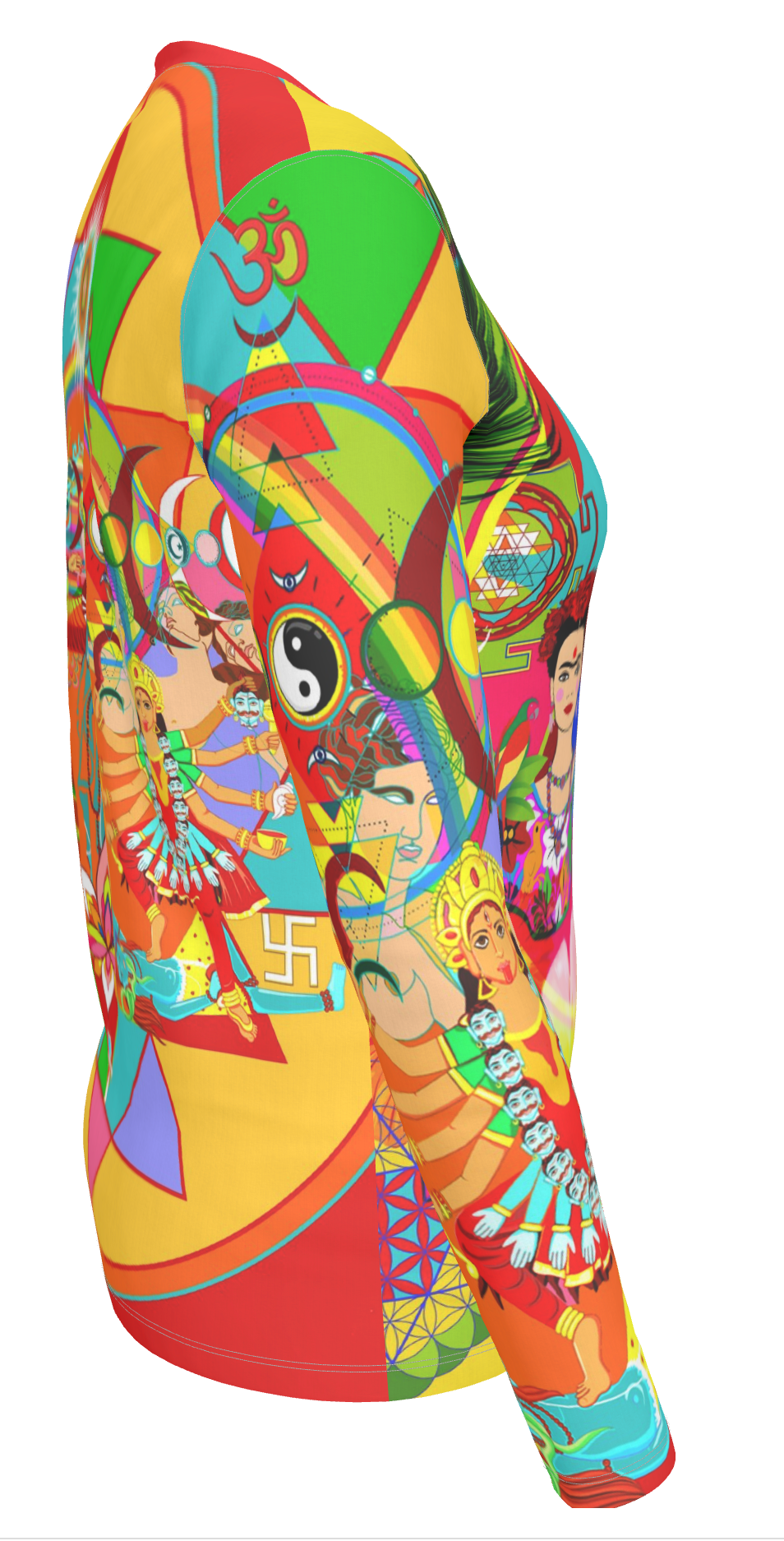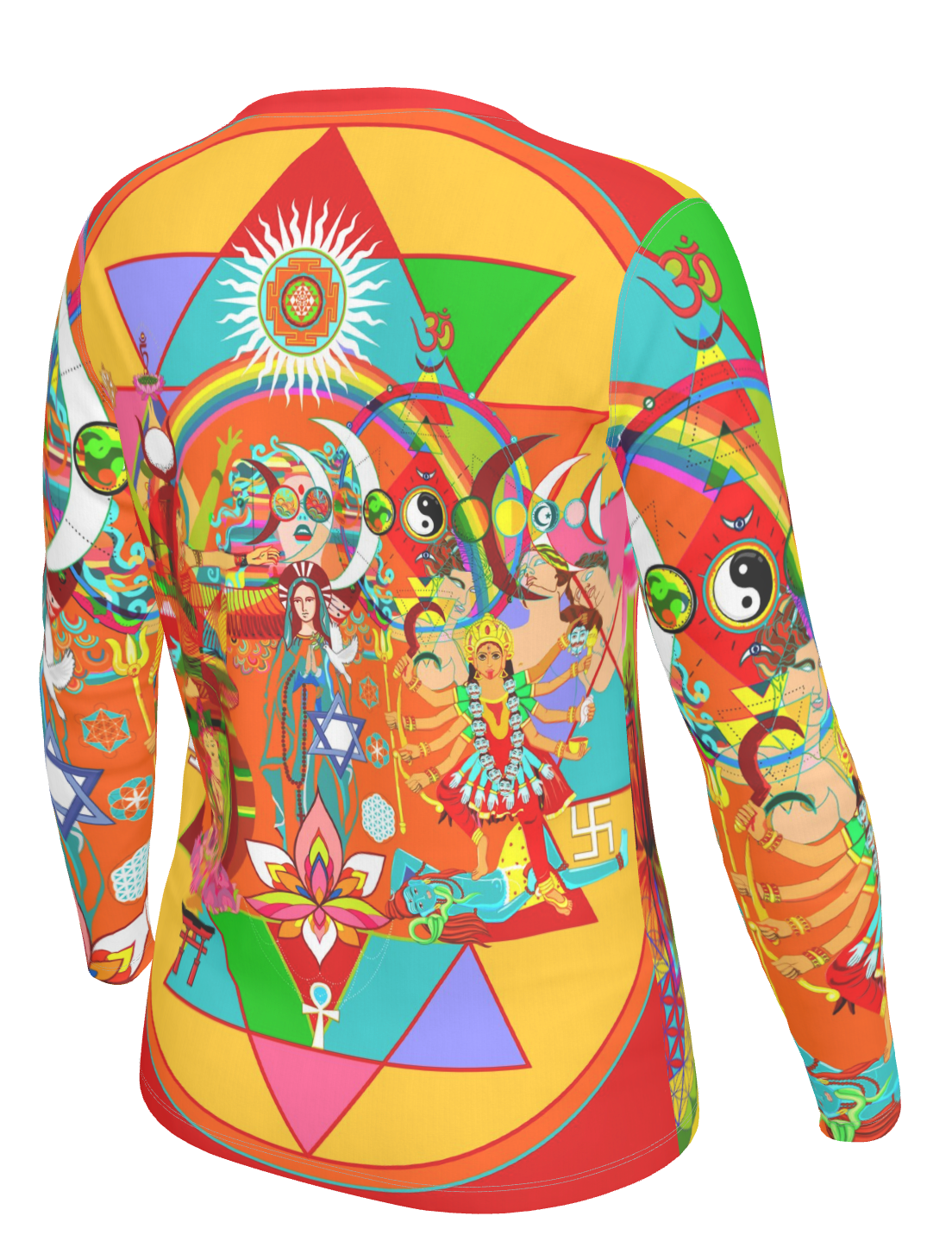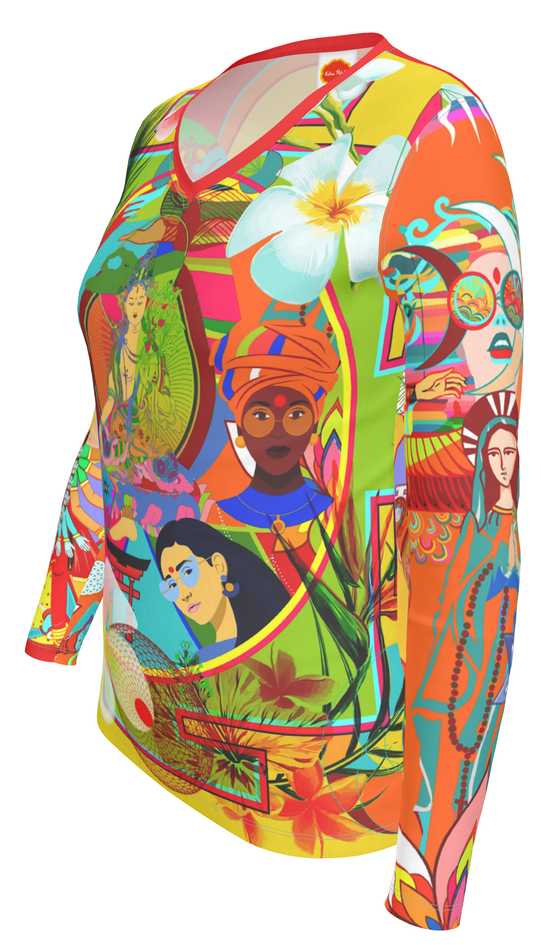 This vibrant canvas draws inspiration from diverse mythologies and world religions, weaving together an eclectic tapestry of symbolism that pays homage to the concept of 'shakti' energy—the primordial, creative force that embodies the feminine divine. From everyday women to the timeless grace of Isis to the nurturing warmth of the Virgin Mary, and the fierce, transformative power of Goddess Kali, these representations collectively encapsulate the cosmic spectrum of feminine energy—nurturing, empowering, and infinitely expressive.