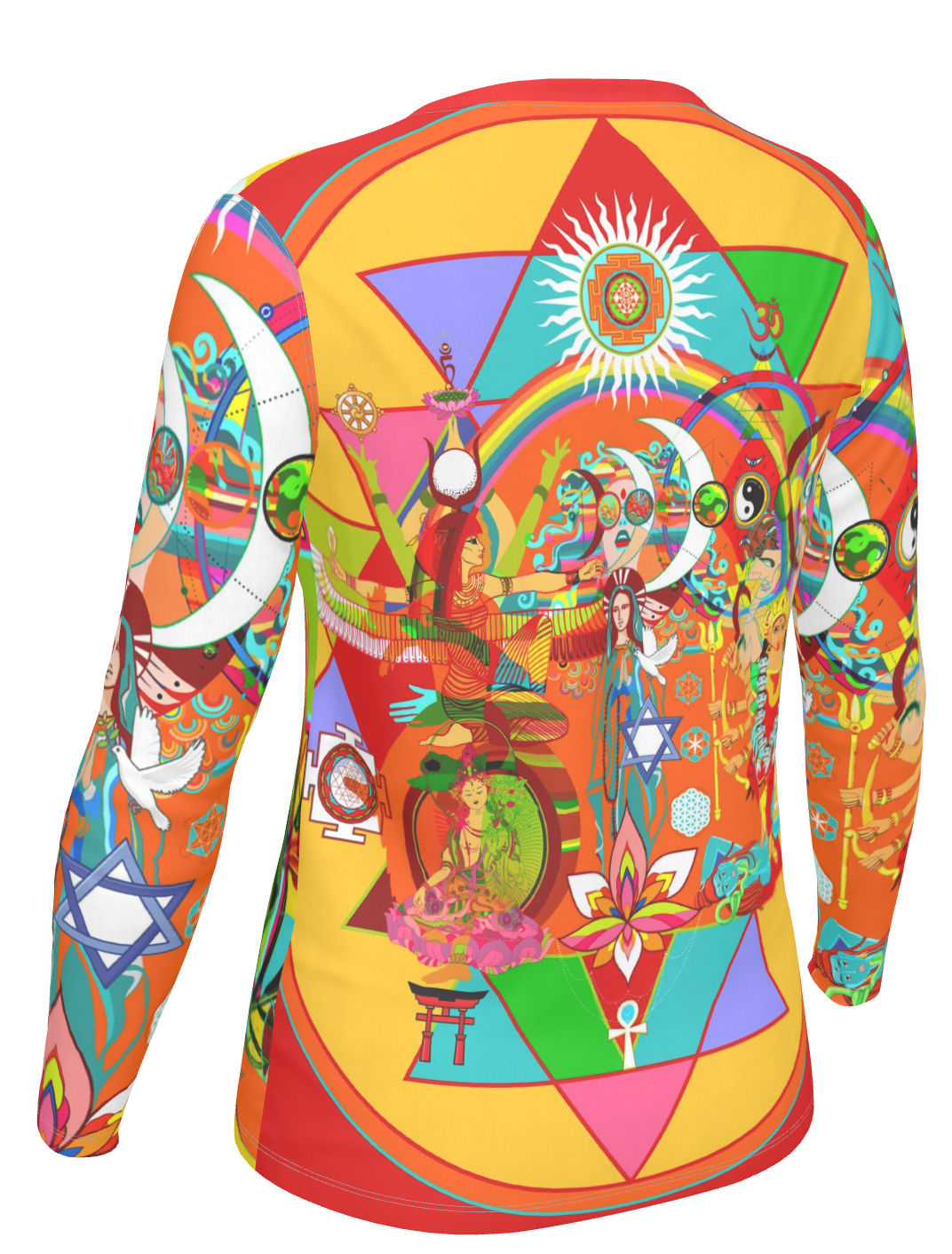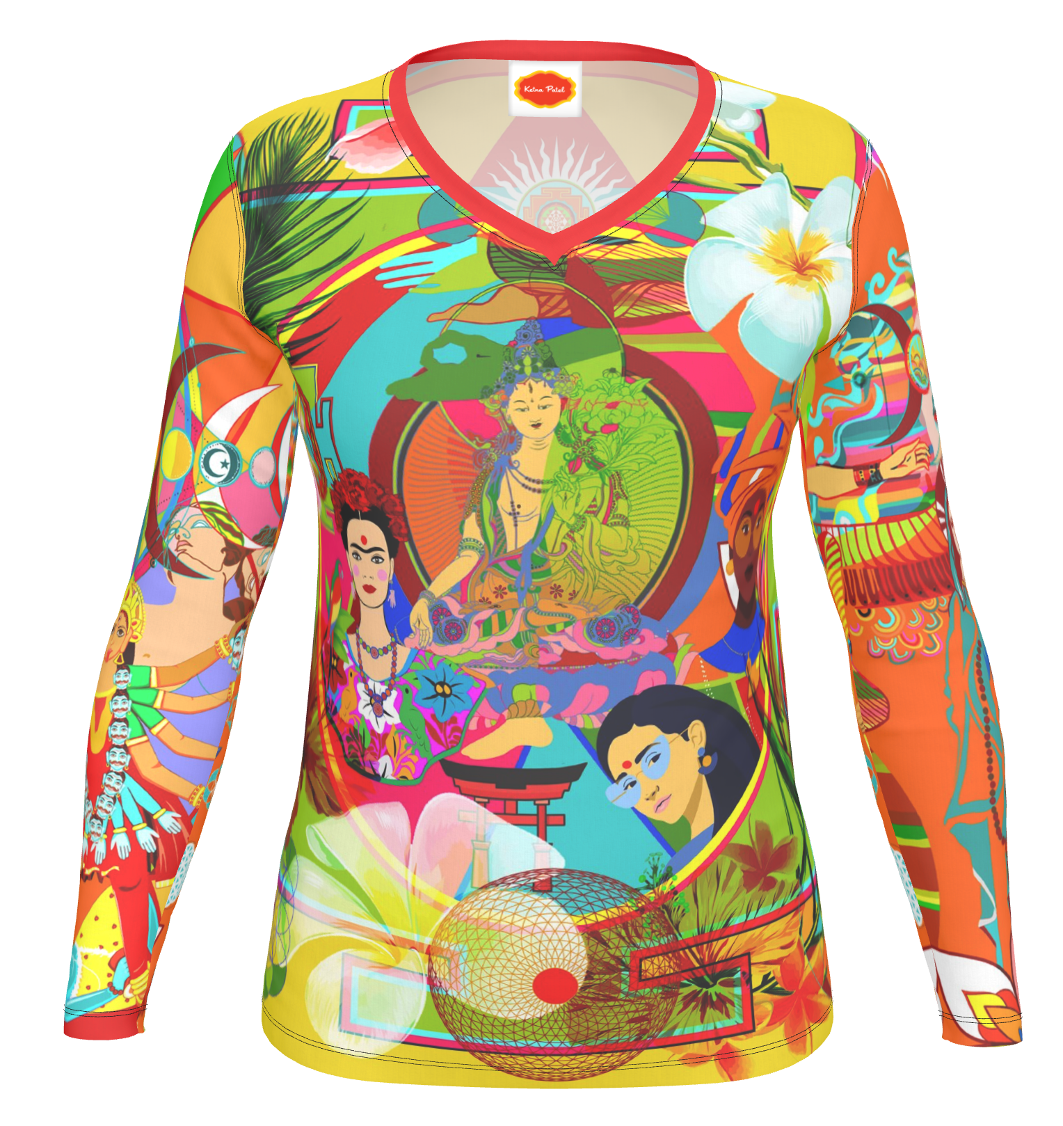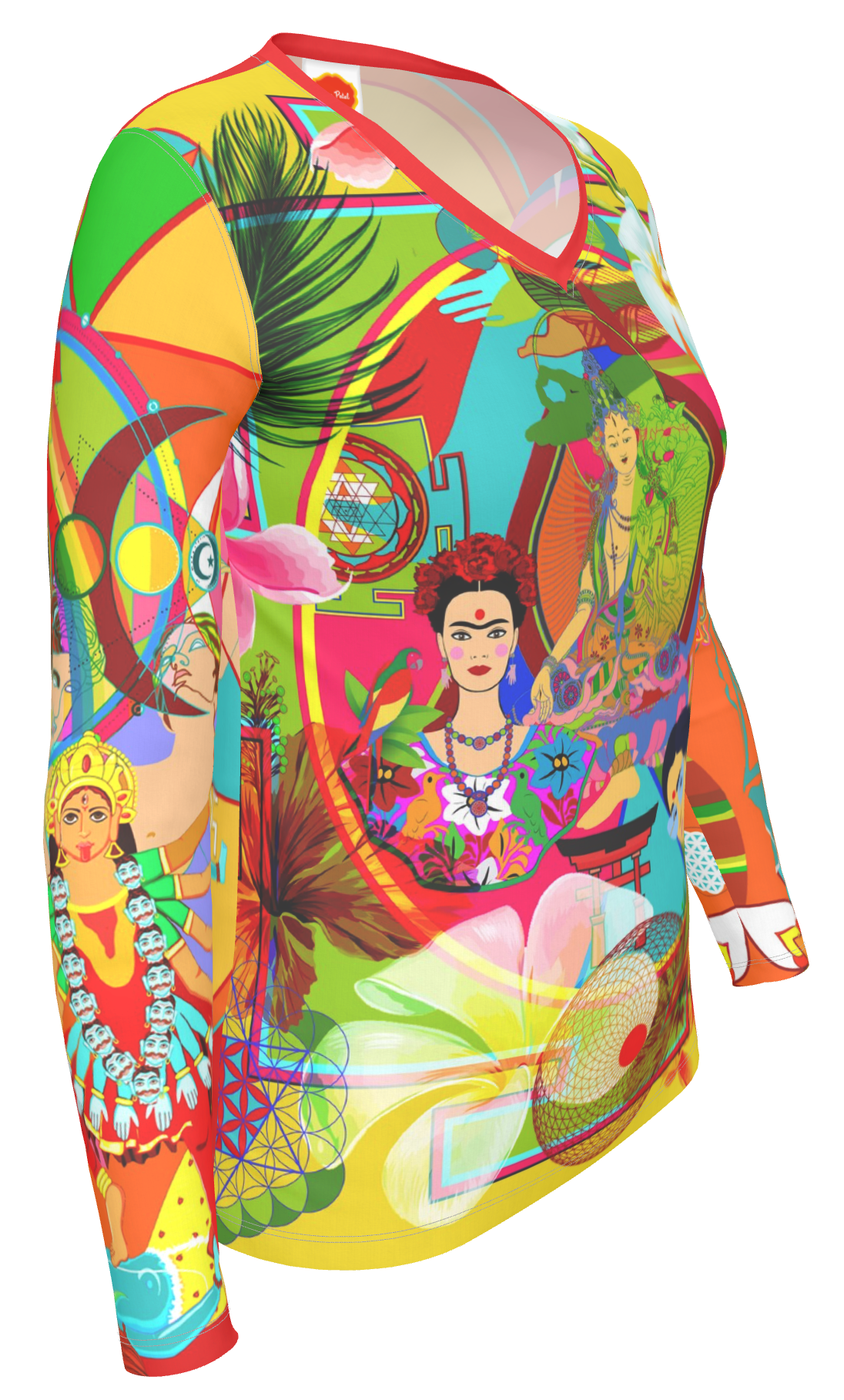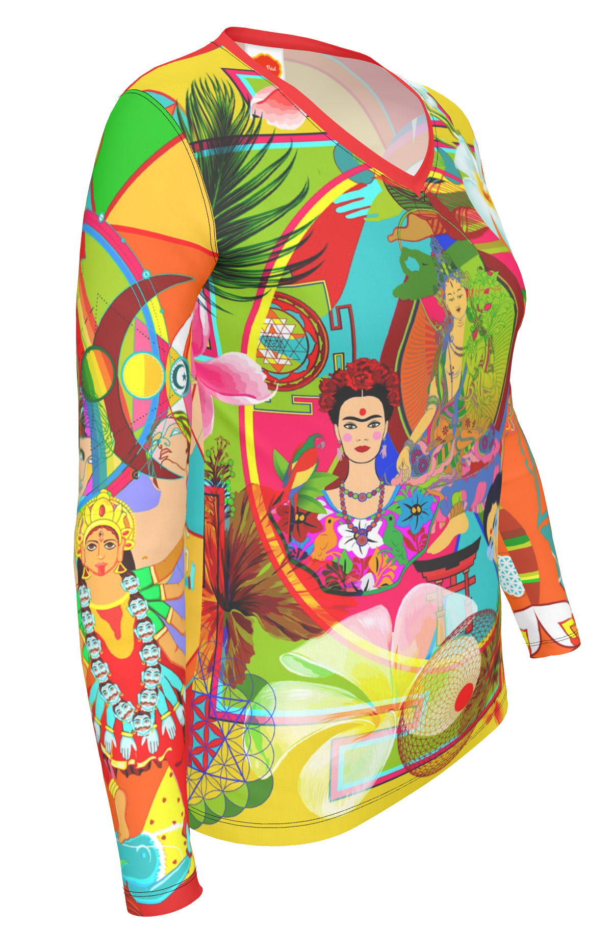 This vibrant canvas draws inspiration from diverse mythologies and world religions, weaving together an eclectic tapestry of symbolism that pays homage to the concept of 'shakti' energy—the primordial, creative force that embodies the feminine divine. From everyday women to the timeless grace of Isis to the nurturing warmth of the Virgin Mary, and the fierce, transformative power of Goddess Kali, these representations collectively encapsulate the cosmic spectrum of feminine energy—nurturing, empowering, and infinitely expressive.